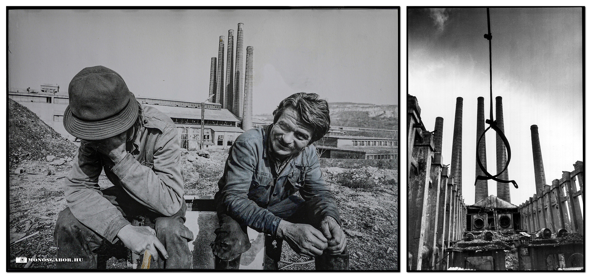 Képpár a tatabányai Cement- és Mészmű eltűnő ipari világáról, a ’90-es évek végi leállás előtti időszakból.
