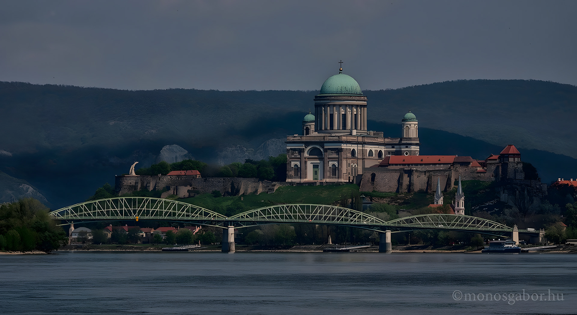 Az esztergomi Várhegy, előtérben a Mária Valéria híd, 2015
